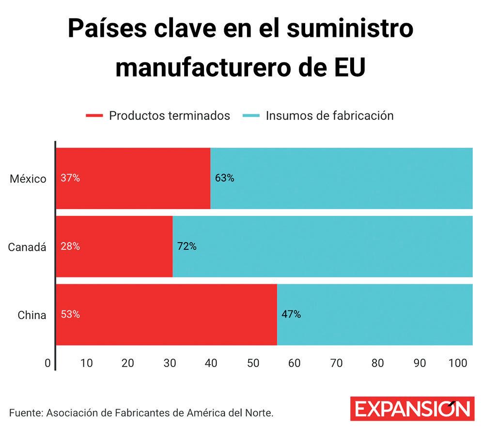 La relación no se limita a lo que Estados Unidos compra a México y Canadá, también abarca lo que les vende, que equivale a más de un tercio de sus expor-