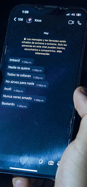 con la situación física o de exposición, por ejemplo, en fotografías, hacerse memes y pasarlos en los grupos de WhatsApp”, compartió Diana Isabel, quien tiene contacto directo con grupos de estudiantes de educación básica. El resultado del acoso digital también genera secuelas, y como en el acoso físico, las víctimas pueden presentar signos de baja autoestima, llanto sin motivo, aislamiento, miedo, fobia y deseo de abandonar las actividades que les gustaban. No obstante la problemática de todos los casos registrados de acoso escolar, el ciberbullying es el que menos se denuncia en Coahuila. z Especial 3C