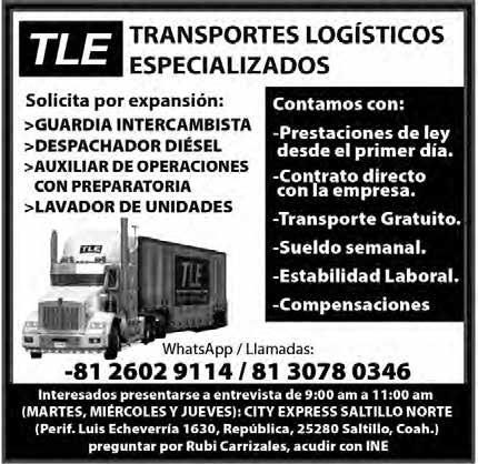 INTERESADOS FAVOR DE COMUNICARSE AL TELEFONOS 844-43985-84 Y 844-439-87-75 EXT. 14; SOLO WHATSAPP 844-159-95-77.