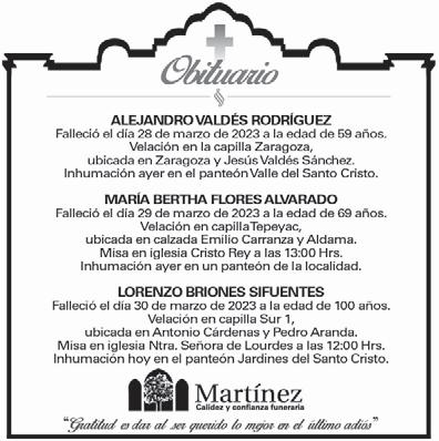 Viernes 31 de marzo de 2023 | Año XV | Número 5403 | 36 páginas | 4 secciones | www.zocalo.com.mx 10.00