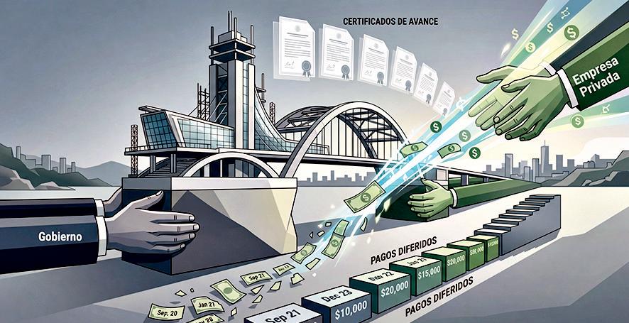 capital propio o contratado para construir, recibiendo el pago por parte del Gobierno mediante un “plan de amortización” o pagos diferidos una vez terminada la obra o conforme a plazos establecidos. Los pagos preestablecidos, generalmente basados en estimaciones de obra y certifi-
