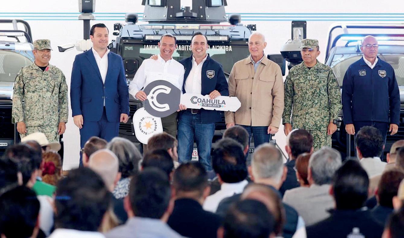 Las patrullas y vehículos se entregaron a la Secretaría de Seguridad Pública, la Fiscalía General del Estado y corporciones policiacas de 32 municipios. Se hizo un reconomimiento a todos los elementos que en los diversos niveles y corporaciones forman parte de la seguridad del Estado y que han hecho de Coahuila el segundo estado más seguro del país, incluyendo Saltillo y Piedras Negras, que son la capital y la frontera más seguras de México. Torreón también está en el top 16 de las ciudades más seguras del país. n Redacción