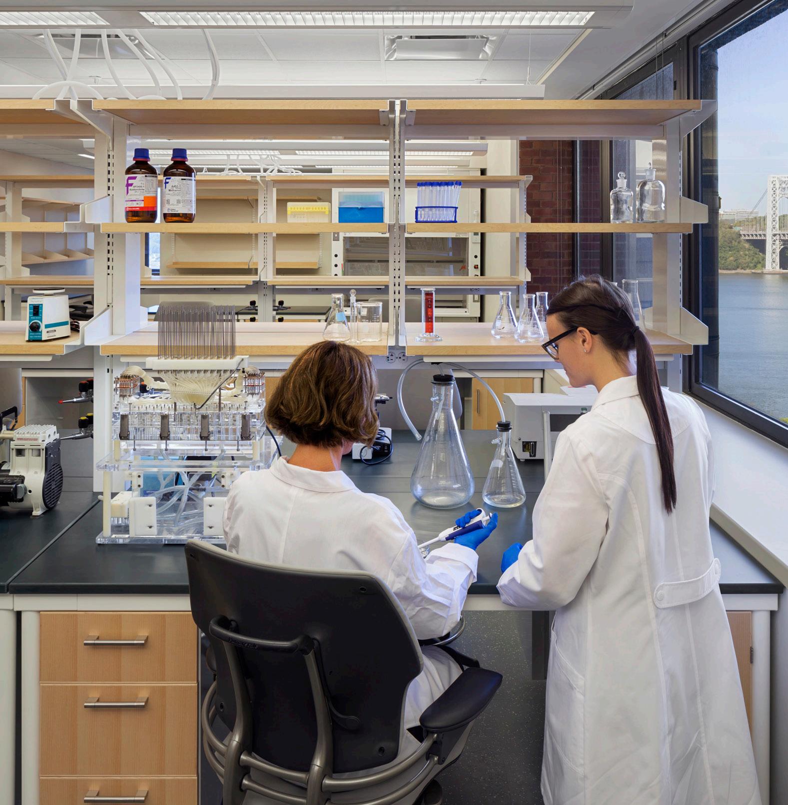 The scope of the project covers several floors of small, outdated and enclosed laboratories for a combined 33,000 sf multi-level rehabilitation and conversion of core laboratory, research facilities as well as teaching and administrative facilities. An existing floor space of approximately 10,969 gsf was converted to a wet lab, accommodating simultaneous and separate ventilation and utility connections at individual lab modules to ensure the reliability and accuracy of results as well as occupant safety throughout the space. The 4th floor rehabilitation at 11,000 sf includes an open research wet lab dedicated to performing neuroscience research; faculty and administrative offices, staff work areas, and support spaces. Laboratory spaces comprise animal testing, two photon microscopy, tissue culture, equipment and storage support rooms, a break room, and an accessible toilet with shower. Finally, the 8th floor (11,000 sf) rehabilitation houses a new independent vivarium with equipment and appropriate support space.