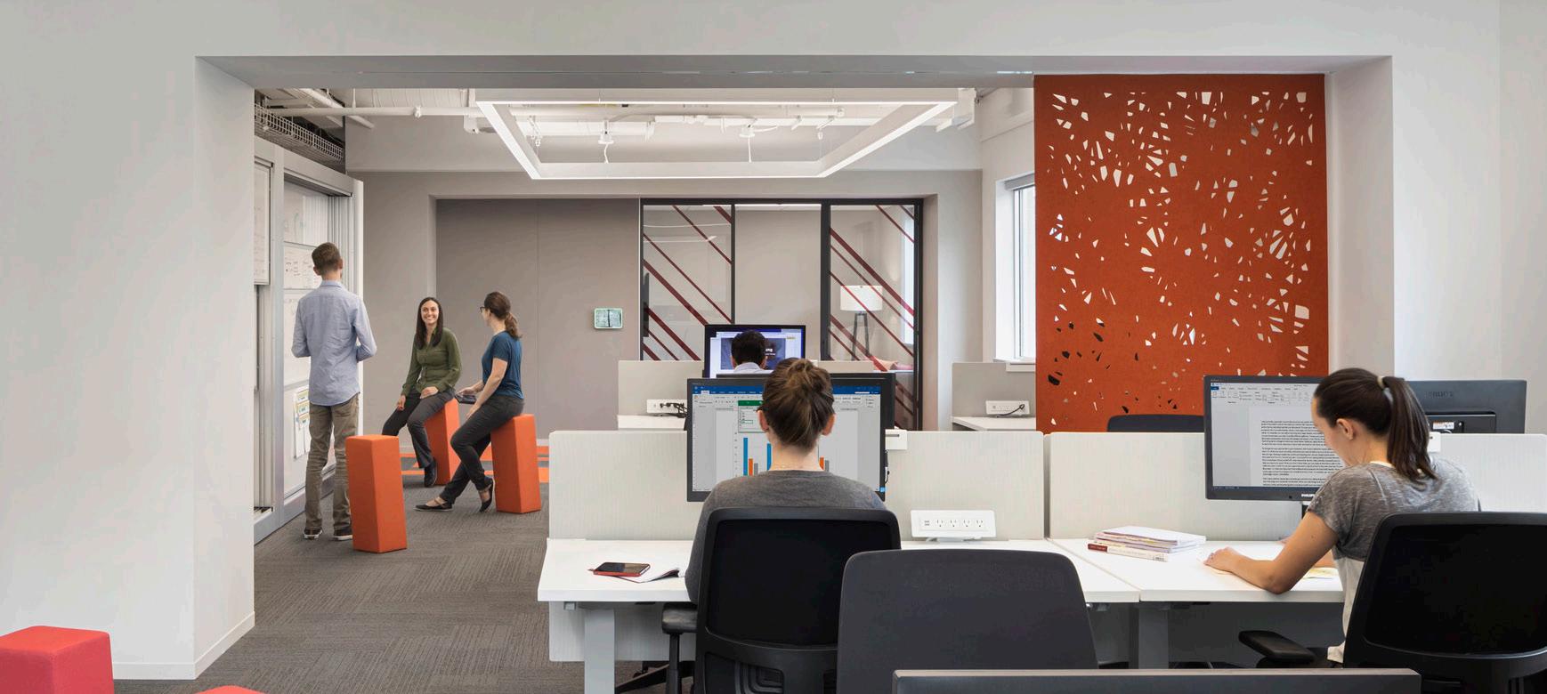 Philips Respironics, a global leader in the development of innovative sleep and respiratory solutions, required a new space that i based on the principles of shared space, flexibility, mobility, and sustainability. The new dynamic Digital Hub workplace serves as the new prototype for its operations. It provides a creative environment for new product development, product research, marketing, and cocreation with outside companies and the local institutional community. The space promotes connectivity and collaboration by providing free-address, desk sharing, and alternative work settings—crucial requirements to attract and retain top employees. A cue from Philips’ expertise in the respiratory market is reflected in the ceiling and partitions, which is designed to appear as though it is “breathing”—a metaphor for the type of important product development occurring in the new workplace.