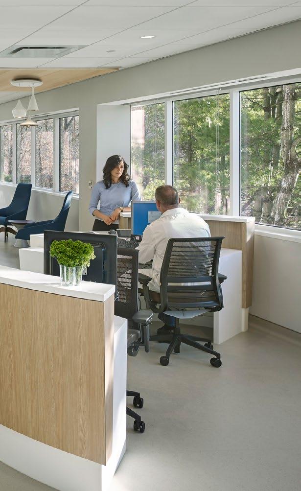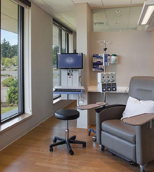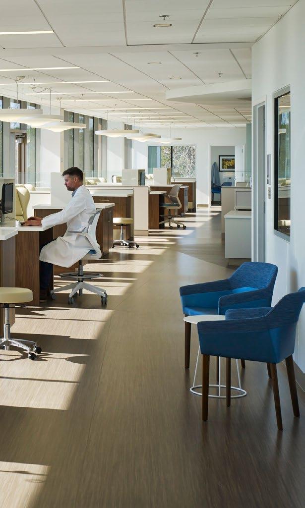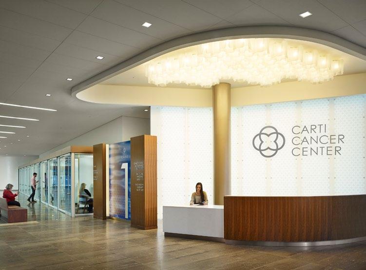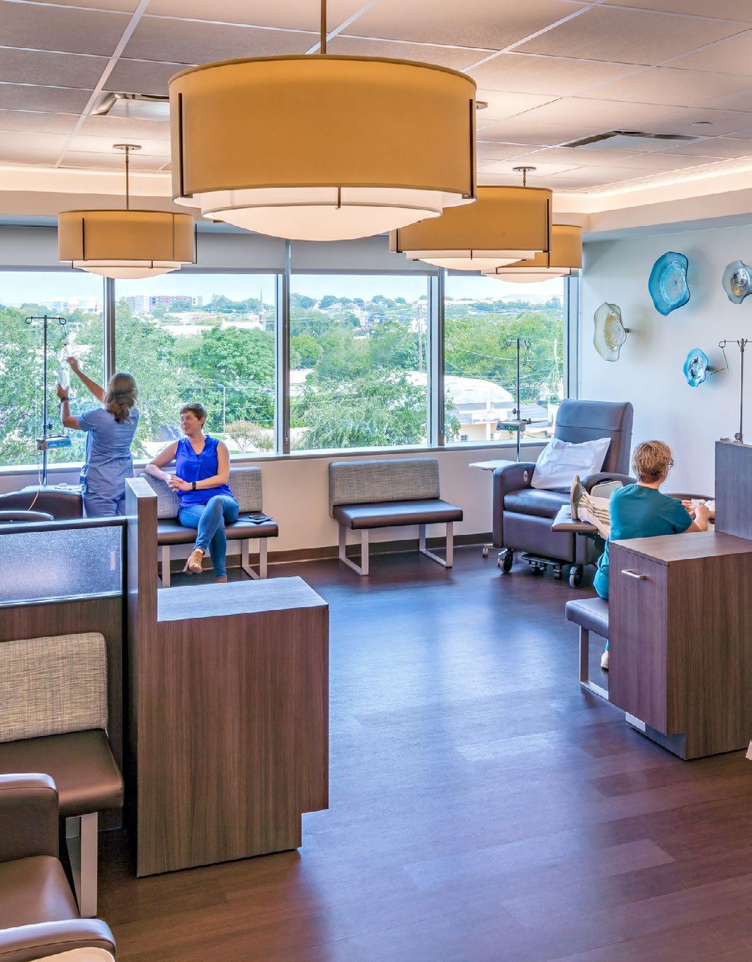 Biophilic design informs planning of clinical areas and infusion; views of nature, natural materials and color palettes extend the experience.