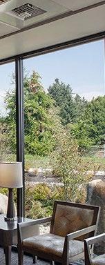 The infusion therapy center, located on the fourth floor, takes advantage of the dramatic natural landscape of heavily wooded hills and distant mountains.