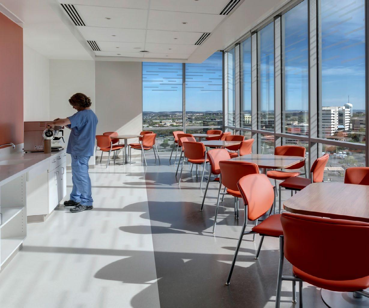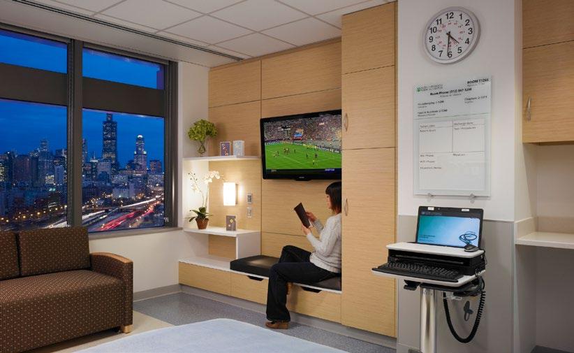 A focus on patient, family, and staff comfort inspired the design of the bed tower and interiors, both of which enhance health and wellness.