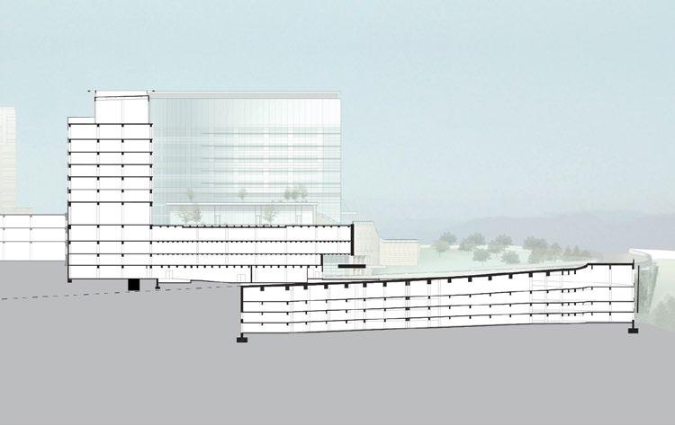 Through its unique use of a sloped site, project challenges traditional healthcare typologies to enhance patient outcomes and visitor experiences with compelling views, access to nature, dynamic public spaces, and daylight.