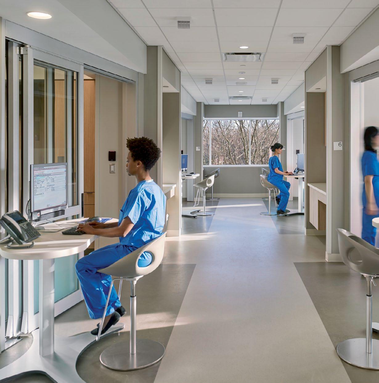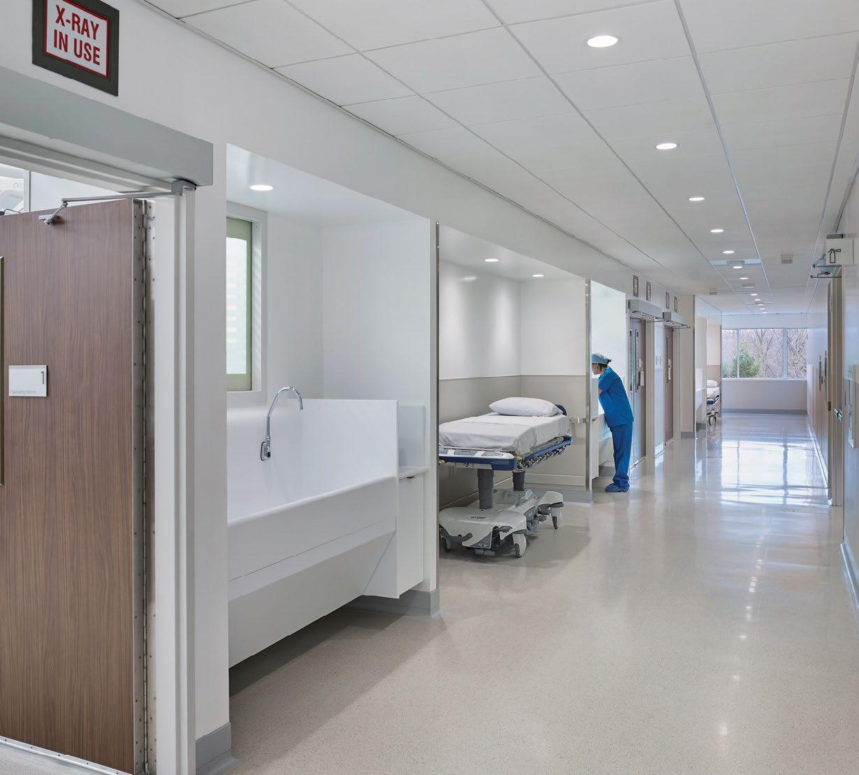Three room ambulatory surgical suite maintains views to outdoors from the sterile core; Colocated imaging supports integrated care.