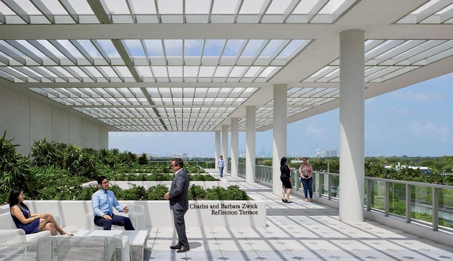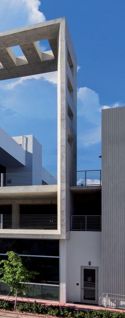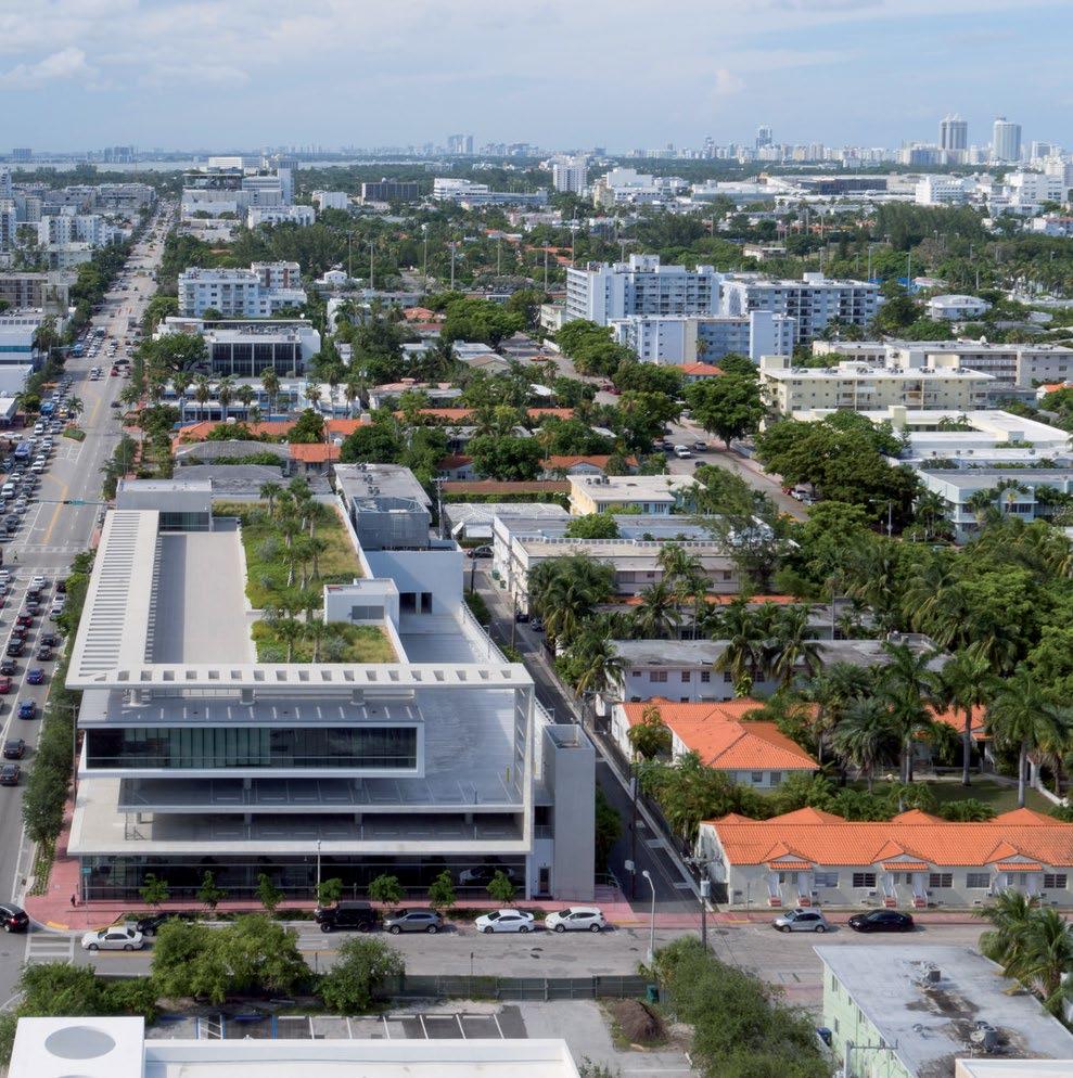 A covered roof deck crowns the building with views across Coral Gables to downtown Miami.