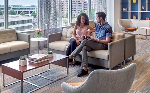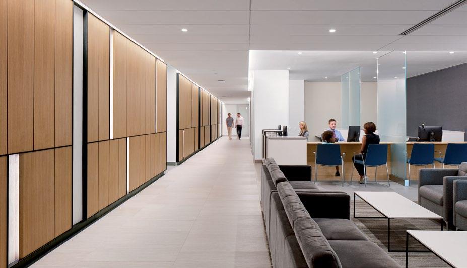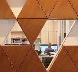 Left: Wood tones add warmth and comfort to the work environment