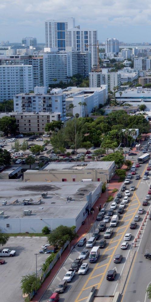 Aerial view along Alton Road looking towards the city center