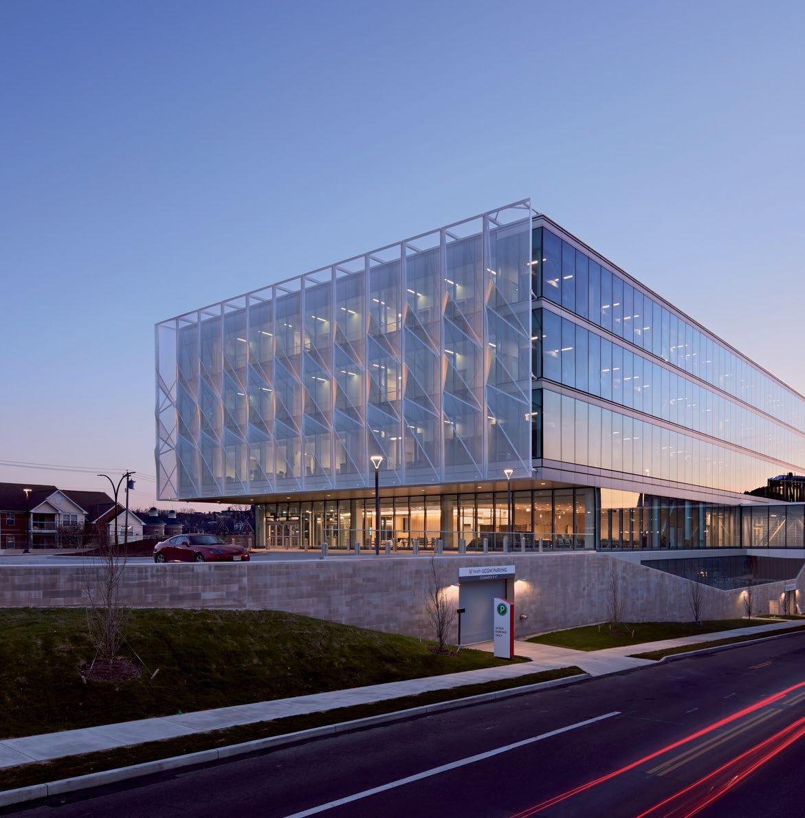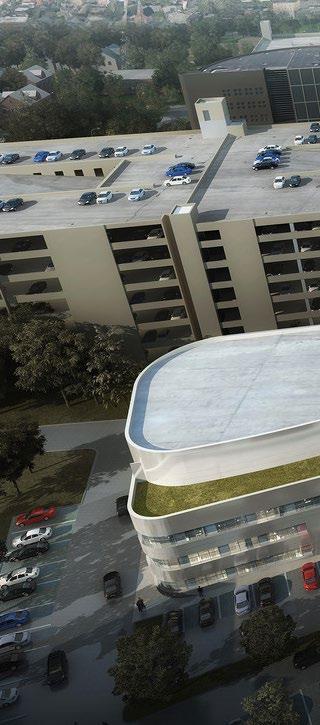 Mid-level parking located between ground floor retail and upper level clinics creates a novel mixed-use experience