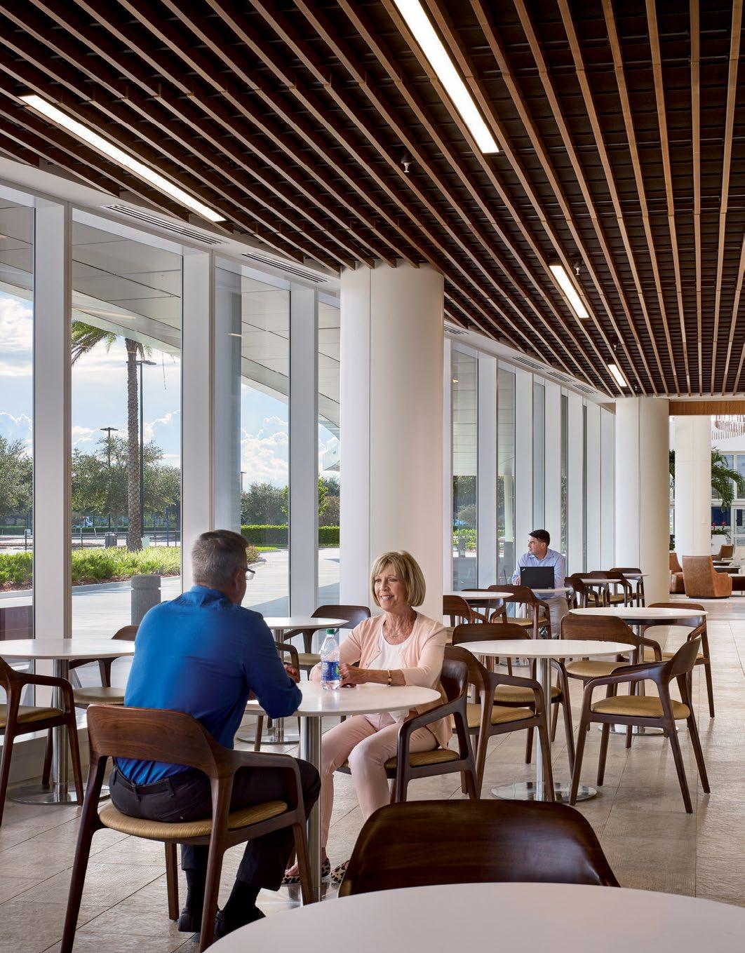 Left: Dining space Right: Hospitality-like lobby reception welcomes patients