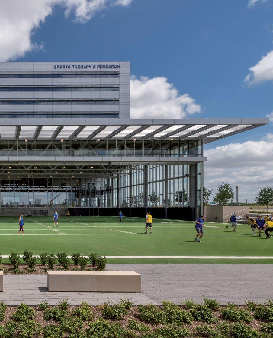This sports performance, research, and wellness center adjacent to the Dallas Cowboys’ new world headquarters is a nine-story active showcase of health and wellness on the 91-acre “The Star in Frisco” campus. In addition to outpatient imaging, surgery, urgent care, medical office space, and a pharmacy, the facility houses a street-level Sports Performance Center that features an indoor/outdoor playing field, basketball court, and training, research, and rehabilitation areas.