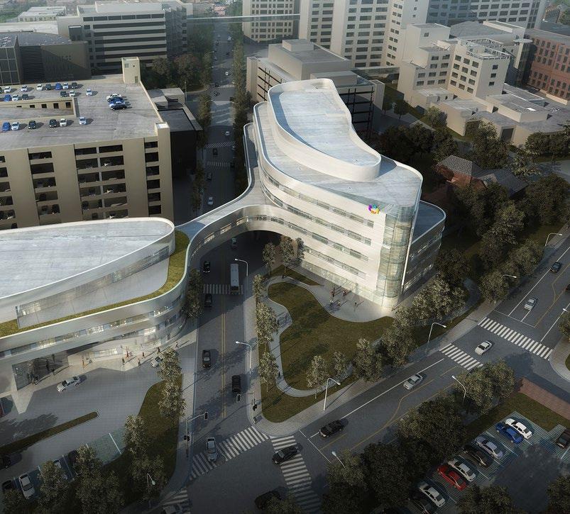 The look and feel of the new facility reflects a dynamic expression of the institute’s clinical vision of ‘life in motion,’ employing a language of sculptural, fluid forms that link program elements and subtly adjust for internal demands, site configuration and views.
