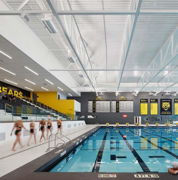 In keeping with the client’s desire to integrate the school into the community, the design of the building allows community access to many of the amenities including the stadium, gyms, theater, and pool.