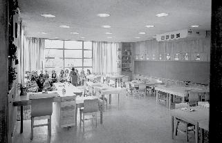 → Crow Island was the first of its type to be zoned by age group, with four classroom wings surrounding a common activity core.