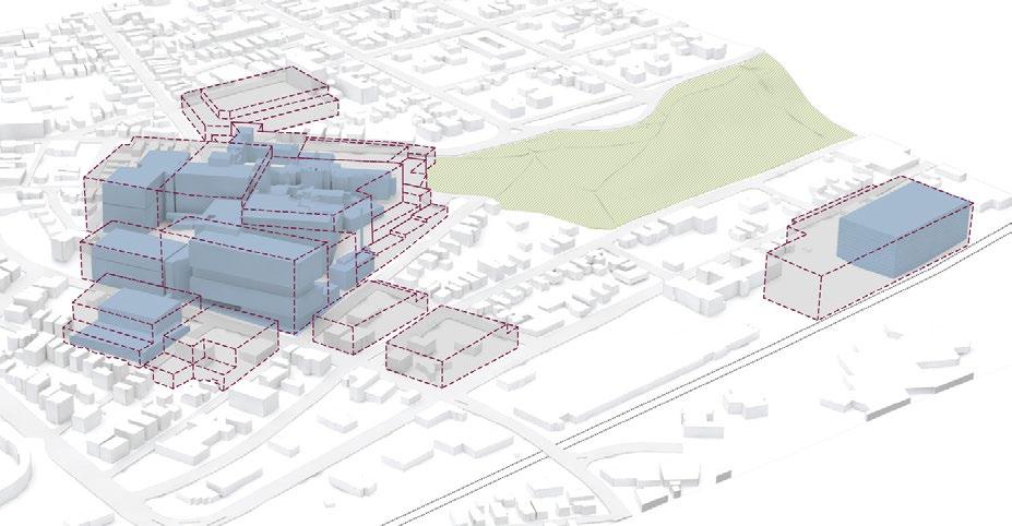 Form-based zoning envelope protects historic neighborhoods while enabling hospital flexibility to grow.