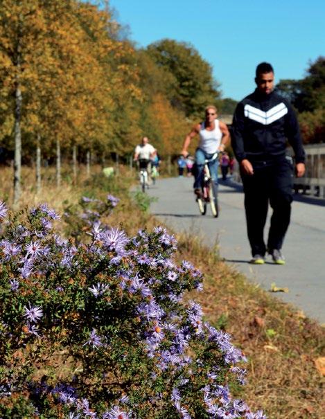 The plan provides guidance for natural landscapes, bike trails, mixed-use development, and branded wayfinding signage.