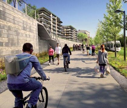 A tree-lined “Children’s Avenue” provides much-desired pedestrian connection and community amenities between hospitals.
