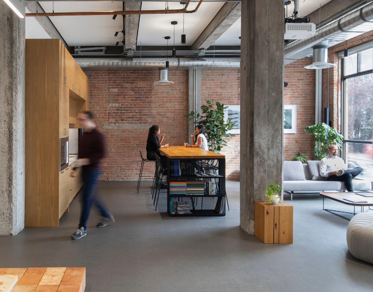 Our new studio in the heart of Vancouver’s downtown business district prioritizes human and ecological well-being. We monitor indoor air quality; provide connections to nature; and avoid many products and materials that contain substances on our Precautionary List. We also re-used, re-assembled, and re-imagined many parts and components of our previous studio.