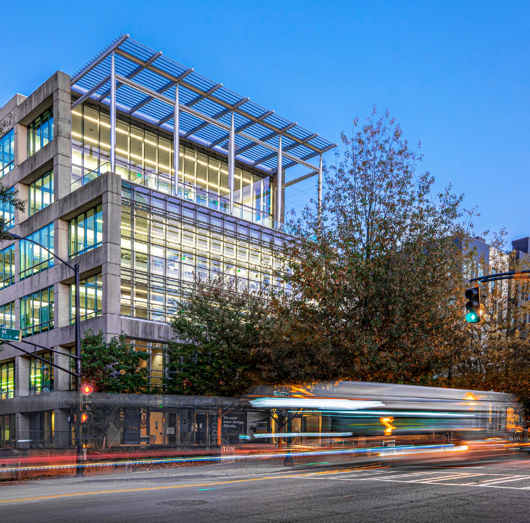 As studio lease terms expire and present fresh opportunities to design our future workplaces, we’re poised to raise the bar on decarbonization—both for ourselves and our profession. The design of our new Vancouver studio, which breathed new life into one of the city’s iconic edifices, is a good example of daring to lead by example. In compliance with our Decarbonization Policy, the studio is located in a building that's been certified to the Zero Carbon Building - Performance™ standard by the Canadian Green Building Council.