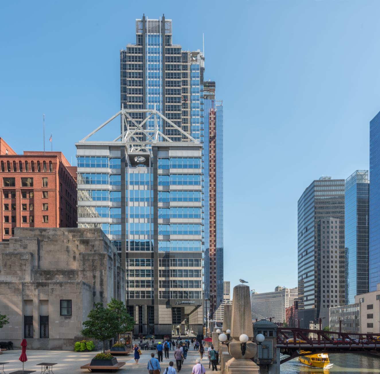 Completed in 1990, this multi-award-winning high-rise is a civic landmark in downtown Chicago. In addition to offering tenants unobstructed views of the city, the building’s design represents a major technical achievement: All 36 stories gracefully straddle active commuter rail lines that cross the site while seamlessly integrating with the urban riverfront.