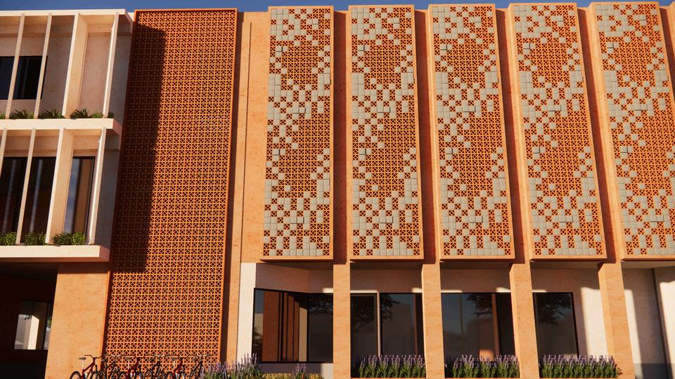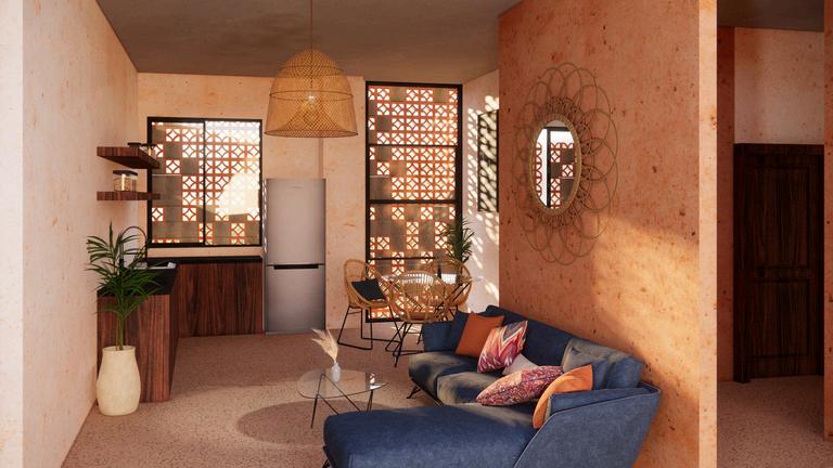 JUEGO DE LUCES Y SOMBRAS: Celos as con tapas de concreto alternadas para brindar ritmo, sombras y pr vacidad a nter or sin mpedir el paso de luz natural