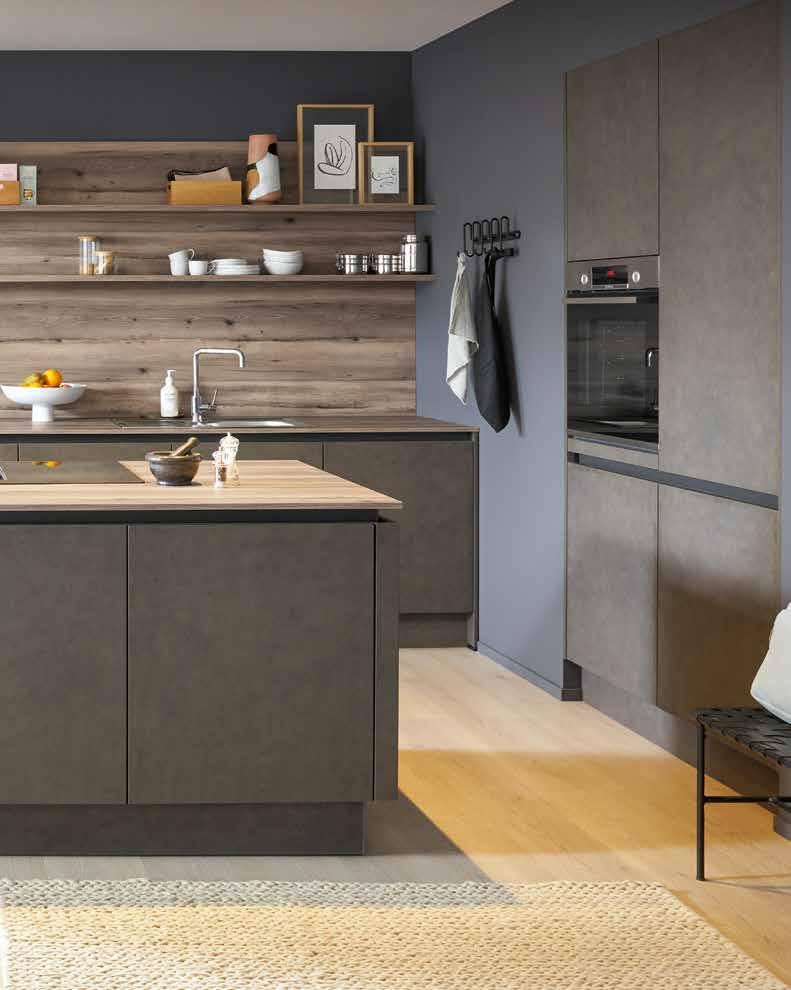 Diese Küche besticht durch ihr edles Design in trendigem Schiefergrau. Sie zeichnet sich aber auch durch hohe Haltbarkeit und lange Lebensdauer aus. Nimm den Komfort in den Vordergrund und entdecke die zahlreichen Vorteile der modernen Inselküche. Ideal für diejenigen, die Design mit Funktionalität wertschätzen.