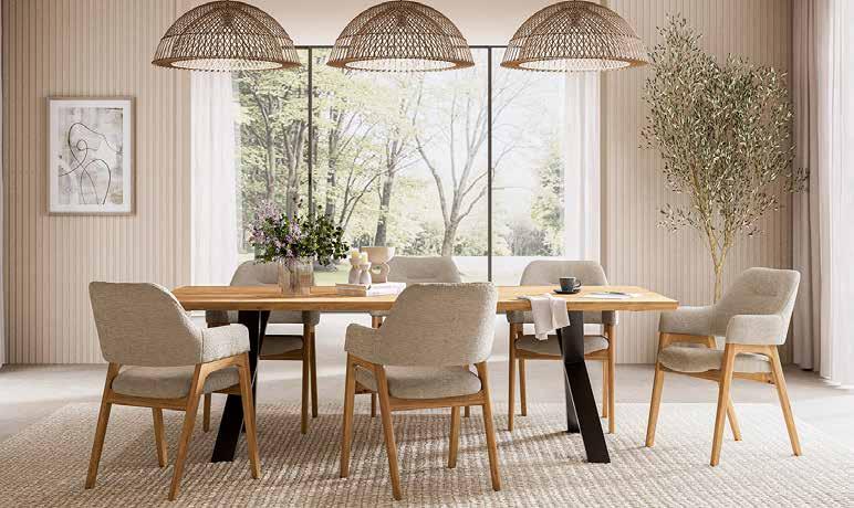 02 NATURA HOME Flore Esstisch, Tischplatte in Eiche massiv, natur geölt, 4 cm aufgedoppelt mit Schweizer Kante, X-Fußgestell in Metall schwarz, BHT ca. 240x76x120 cm, 1.399,–