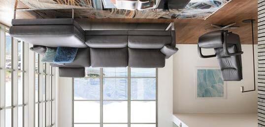 Eine Kombination der besonderen Art. Das Trapezelement lädt zum Kuscheln und Loungen ein. Die Armlehne ist immer klappbar. +25cm