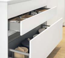 Tolle Übersicht schenken die extra breiten Auszüge der Unterschränke mit viel Platz für Kleinteile.