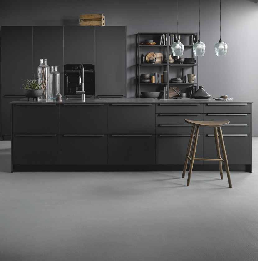 In Onyxschwarz matt mit Anti-Finger-Print Technik. Stellmaß: Kücheninsel ca. 303 cm, TechnikHochschrank ca. 243 cm + Systemregal ca. 120 cm. Alles mit drin ... Hochwertige Markentechnik von : Backofen HBG934BB1, Energie-Effizienzklasse A+ (Skala von A+++ bis D), Kochfeld mit integriertem Muldenlüfter PVQ811F15E, EnergieEffizienzklasse B (Skala von A+++ bis D), Kühl-Gefrierschrank KIR81SDE0, Energie-Effizienzklasse E (Skala von A bis G).