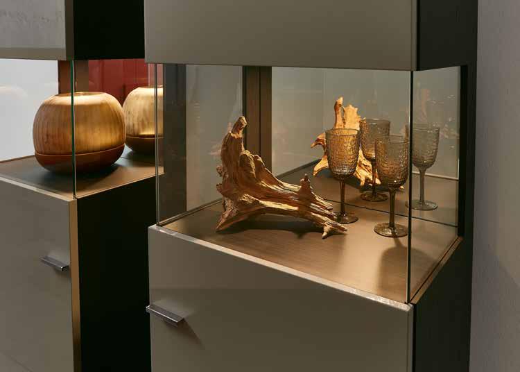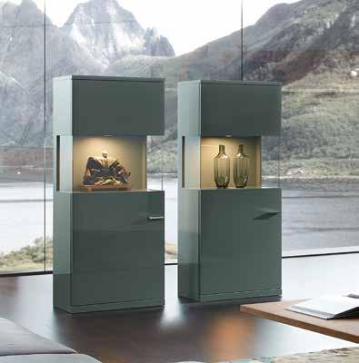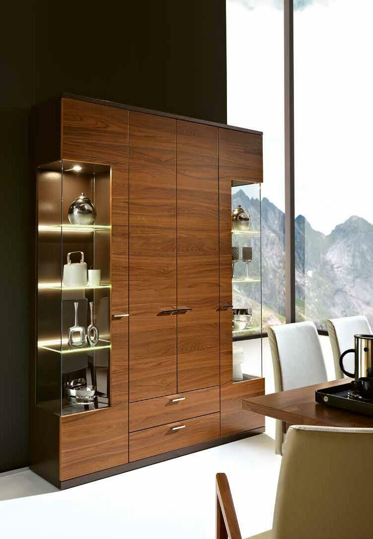 Lighting : You can choose from extensive lighting options for your furniture – LEDs with a pleasant light temperature in the wall boards and glass edges as well as spots in the cabinets. The new 5-channel radio remote control allows for a particularly comfortably control of the various lighting systems.