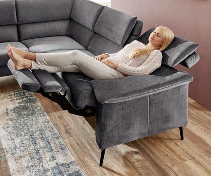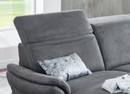 In dieser praktischen Relax-Ecke können Sie den Alltag hinter sich lassen. Der Winkel lässt sich in beide Richtungen verstellen und das Kopfteil kann der Neigung angepasst werden. Für langes Sitzen ohne Verspannung. Mehrpreis 398,- zzgl. Kopfteilverstellung.
