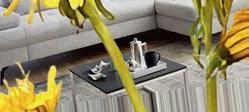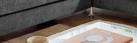 Beim Trapezsofa befindet sich im Mittelteil des Rückens ein eingebauter Tisch, den man einfach nach vorne klappen kann, um den Mehrwert einer Ablage nutzen zu können. Auf Wunsch kann hier sogar eine Steckdose mit USB-Anschluss integriert werden. Mehrpreis Steckdose 198,-