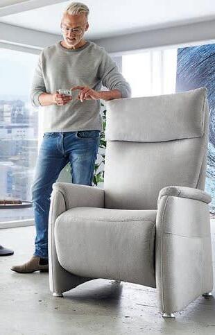 Trotz des hohen Rückens benötigen Sie beim Einsatz der elektrischen Relaxfunktion nur wenig Abstand zur Wand, der Sitz fährt nach vorne und lässt sich dann kombiniert – oder in der Premium Version einzeln – vom Neigungswinkel des Rückens und des Fußteiles individuell Ihrem Empfinden anpassen