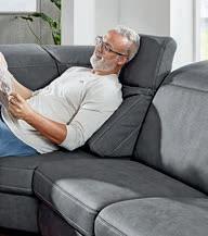 Auf eine wichtige Funktion wollten wir nicht verzichten: Die fast wandfreie RelaxFunktion! Mit einem Knopfdruck gleiten Sie elektrisch in Ihre gewünschte Liegeposition. Die aufgesetzte und in der Höhe und Neigungswinkel verstellbare Kopfstütze passt sich hier perfekt an und ermöglicht ein entspanntes Sitzgefühl Mehrpreis inkl. Komfort-Kopfstütze ab 575,-
