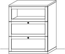 Die 1Raster und1,5Raster hohenSchubkästen werden mit einem 2cm breitenRahmen geliefert, die 2Rasterhohen Schubkästenwerden mit einem 6cm breitenRahmengeliefert.