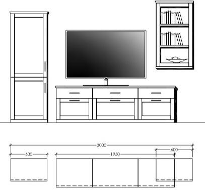 Hängeschränke: Werden 2Raster Elementesowie Lowboards alsHängeelementeeingeplant, so darf die Zuladung jeElement vonmaximal 15kg proMeter aus statischen Gründen nicht überschritten werden! Werden 4 bis 10 RasterElemente, Side- oder Highboards als Hängeelemente eingeplant, sodarf dieZuladung je Element vonmaximal 40kgausstatischen Gründen nicht überschritten werden.