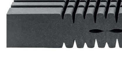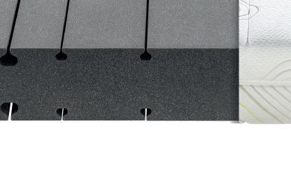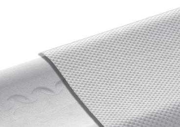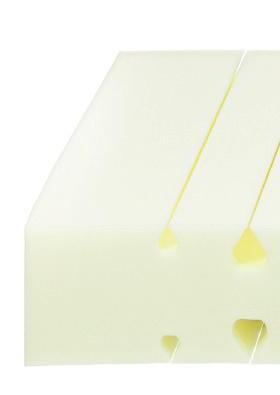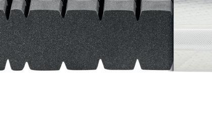 oben 3 cm AQUAPUR®-Noppenschaum mit Waffelprofil mittig 12 cm AQUAPUR®-Schaumkern mit ergonomisch angeordneten Lüftungskanälen