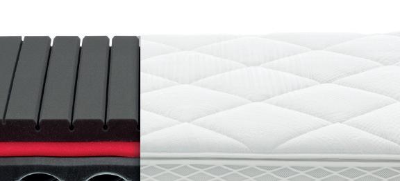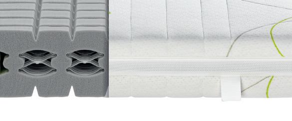 7-Zonen-AQUAPUR®-Schaum, Raumgewicht 45 kg/m³ ergonomische Zoneneinteilung mit Querkavernen flexibel und dauerelastisch Trikot Zwischenbezug