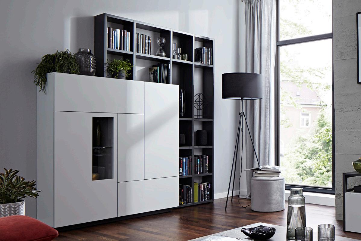 Global 4450 – Wohnwand 8180 in Lack weiß und Lack platingrau