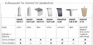 (*entsprechend der Bedingungen im Hersteller-Produktpass) Sitzkomfort: Armteilvarianten: Fußvarianten: Sitzhöhen: VK-Preisliste € - gültig Sonderliste