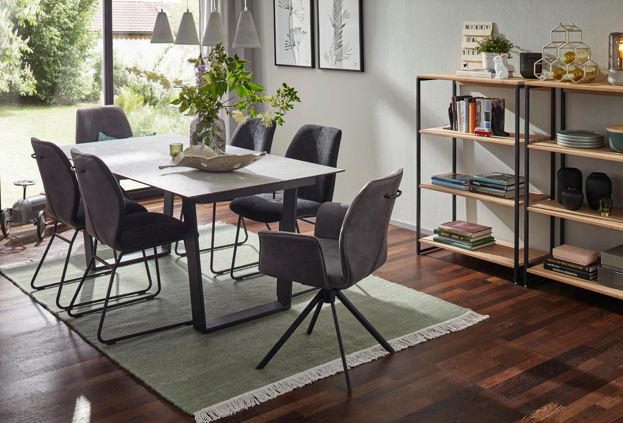 Global Dinner – Esstisch 4093 in Balkeneiche mit Stühlen 6131 und 6132 in Stoff grau