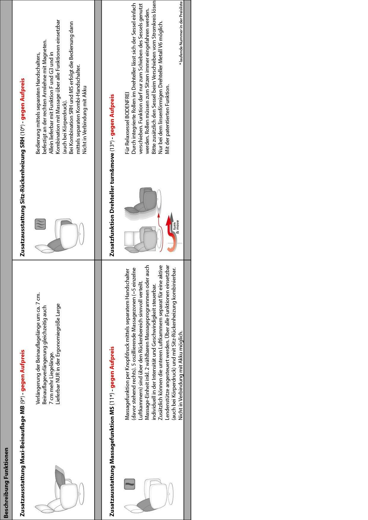 SRHSitz-Rückenheizung Allein nur lieferbar mit Funktion F und G3 und in Kombination mit Massage auch bei Funktion B. Nicht in Verbindung mit Akku. Bedienung mittels separaten Handschalters.
