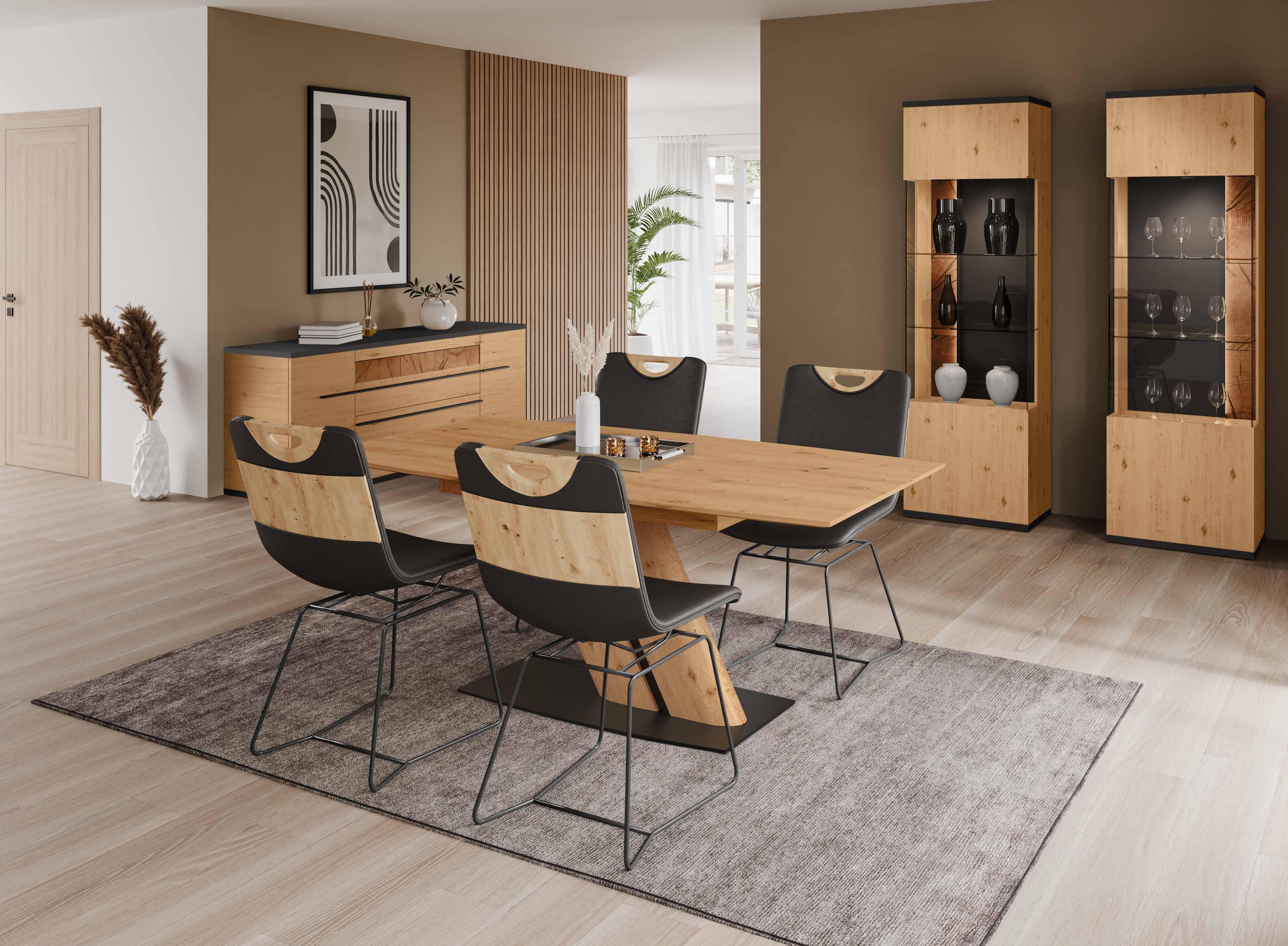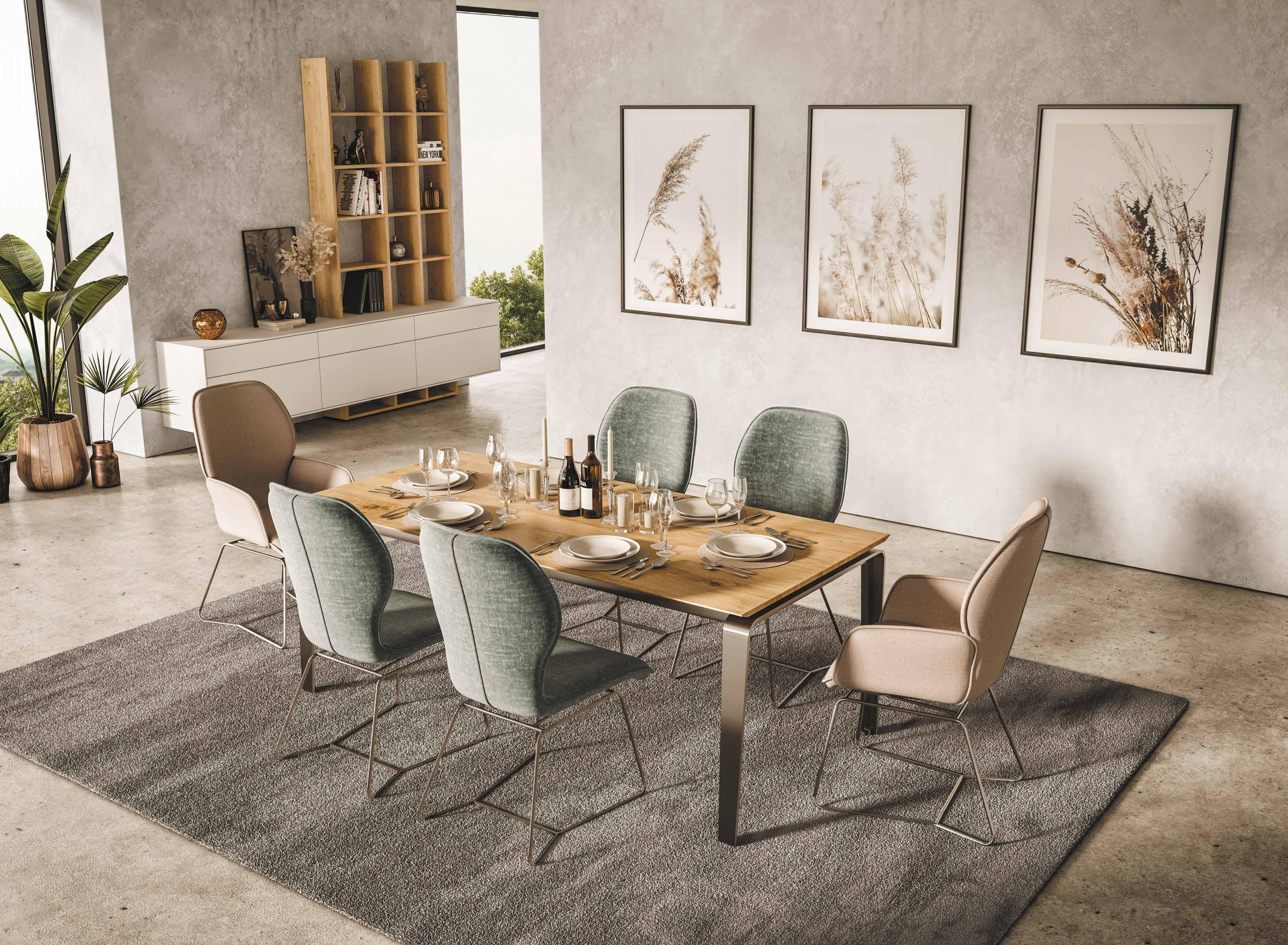 Use LINERA to create a harmonious overall concept when shifting from your living space to your dining area. The Cara chair with an integrated 360° swivel function combines the comfort of an armchair with the function of a chair, and when coupled with a fashionable dining table with a metal base, it creates a unique feel-good area in your dining room. And have you already discovered that you can add a ceramic insert to our ET583? It is scratch-, heat- and stain-resistant, thereby making it perfect for putting down hot dishes or cutting bread.