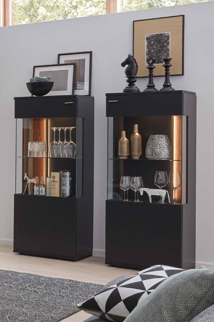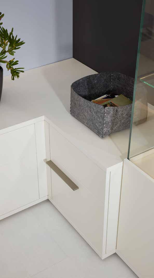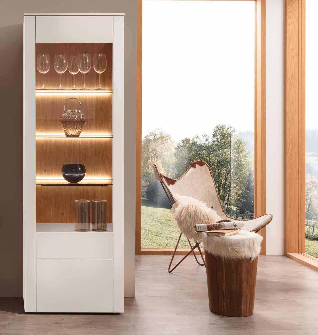 Unser Ziel ist es, Ihnen vielfältige und umfangreiche Kombinationsmöglichkeiten zu bieten, damit Sie Ihrer Kreativität freien Lauf lassen können. Entsprechend ergänzen starke Solisten souverän das vielfältige Programm. In Form von Vitrinen, Sideund Highboards sind sie perfekt auf das Ensemble, als einzelne Raumkünstler oder in Kombination mit weiteren Elementen, abgestimmt. Unsere umfangreiche Couchtisch Kollektion komplettiert das Programm TREVISO.