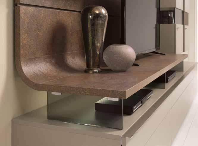 BELLANO begeistert durch sein klares und durchdachtes Designkonzept. Die Brücke als zentrales Designelement des Modells setzt das TV-Gerä t gekonnt in Szene. Spannende Kombinationen aus edlem Lack und hochwertigem Echtholzfurnier werden durch neue Optiken und Materialvarianten ergänzt während besondere Akzente und Elemente für eine erstaunliche Vielfalt sorgen.